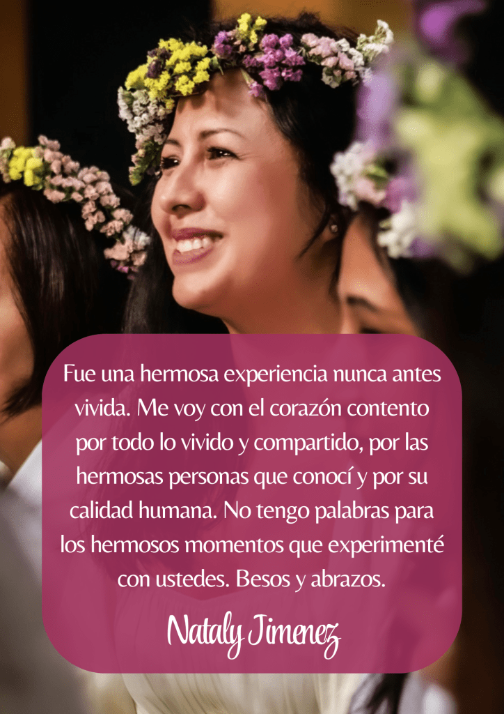 Tengo la fortuna de decir que estoy cumpliendo la misión para la cual fui llamada a esta tierra. Con esta misión emprendo mi viaje sagrado con el que sigo sanando y acompaño a sanar a otras personas que necesitan sentirse escuchadas, conocerse mejor, entender sus emociones, sanar sus vínculos y su historia.
